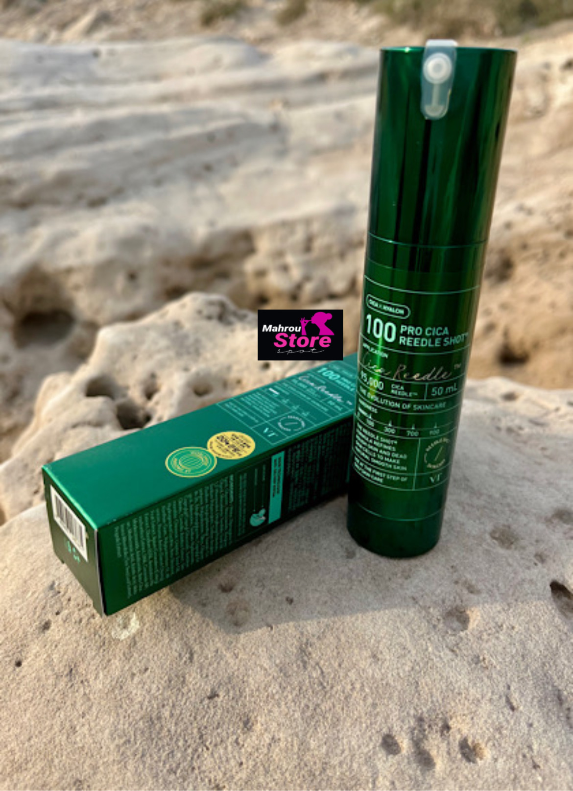 این محصول برند VT Cosmetics هست، بهنام Cica Pro Cica Reeedle Shot 100 که از ترکیبات Cica + Hyalon استفاده میکنه و معروفه به خاصیت ترمیمکنندگی فوقالعاده برای پوست.